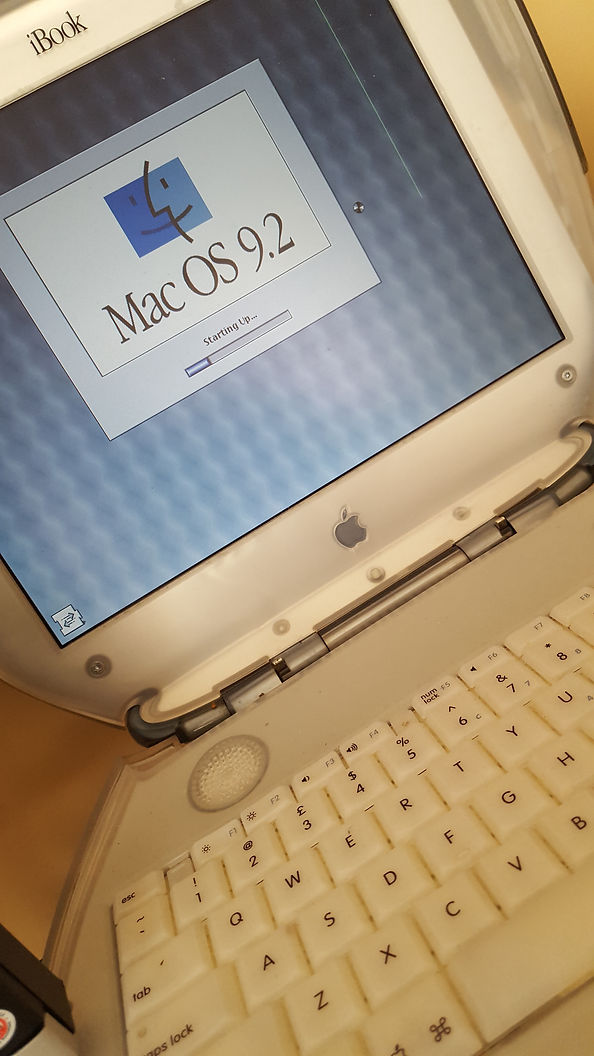 Standard Clamshell iBook with upgraded RAM and SSD hard drive... the original hard drive was just too noisy!